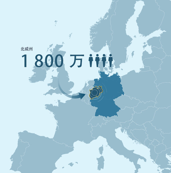北威州不仅是人口最多的联邦州,也是欧洲中心的经济心脏和国际枢纽——简而言之,“欧洲的心跳所在”。 它的这一地位归功于其位于欧洲大陆的中心位置、高人口密度和卓越的经济表现。