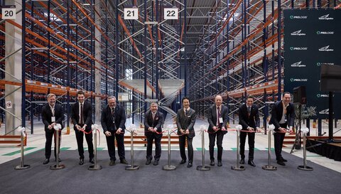 郵船ロジスティクスが今般開所した物流センターは約10万㎡の敷地に建設され、総保管面積は約5万7000㎡。2棟の建物に分かれている。また88のトラック用ドックを備え、5万パレット以上の収容能力を誇る。これにより、今後ドイツ国内および欧州近隣諸国の複雑かつダイナミックな市場ニーズに柔軟かつ確実に対応することが可能となる。また、この最新鋭のセンターは、持続可能性、スピード、安全性を重視して設計されており、太陽光パネルの活用や電動フォークリフトの導入により、従来比で最大7000トンの温室効果ガス排出量削減が見込まれている。