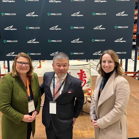 開所式にはNRW州経済・産業・気候保護・エネルギー省次官 パウル・ヘラー、そして弊社ドイツ本部NRW.Global Business(NGB)のアジア部長ベッカー、日本担当プロジェクトマネージャーのマリーエンフェルトが出席した。ヘラー次官は開所に当たり「物流業界はNRW州の発展を支える重要な要素。最先端の物流ハブを活用することで、輸送と保管の効率化と持続可能性を推進し、当州の物流拠点としてのトップポジションが維持できる。ルール地域の町、このボトロップで再開発された産業用地に革新的なヒートポンプ物流センターを実現できたことは、地域全体にとって朗報であり、NRW州が先進的な投資に適した魅力的な環境を提供していることを示すもの。加えて、三菱電機の参画はドイツが引き続き日本企業にとって重要な拠点であることの証左だ。」と力強くコメントした。
