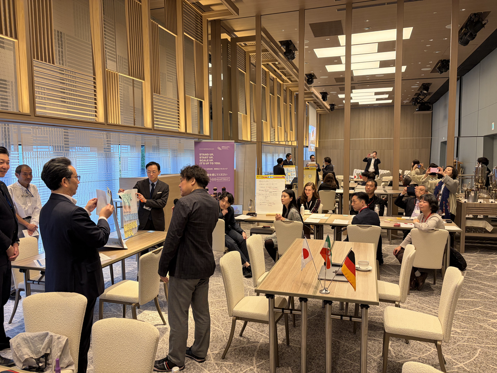 午後のワークショップでは、参加者がそれぞれ関心のあるテーマを選び、積極的にケーススタディ・議論を実施。選ばれたテーマは「欧州進出にあたっての法律や規制 ヒントと落とし穴」と「スタートアップの資金調達戦略」の2つで、参加者はチームに分かれ、仮想進出計画を練った。インタラクティブなセッションは予定時間を過ぎても白熱。その後のプレゼンタイムには、各チームがドイツ進出に向けた気づきや戦略を発表し、会場は大いなる盛り上がりを見せた。